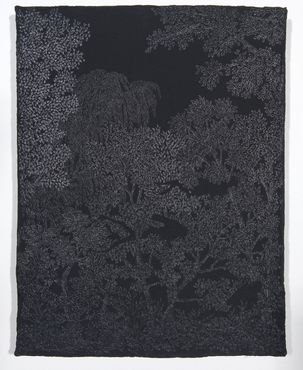 Tous mes dessins au graphite sur gouache noire sont créés pour interagir avec nos mouvements et la lumière renvoie l'image par fragment selon notre position. Selon votre mouvement et son exposition à la lumière, l'image disparaît ou apparaît. C'est une vision qui peut nous rappeler le terrain de jeu de notre psychisme, le balancement continu entre conscience et inconscience ou encore le discours énigmatique des rêves.